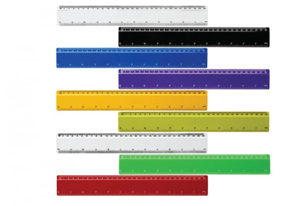 These prices are only a guide and can vary based on your qty and branding needs.The Renzo 12" / 30cm Screen Printed Ruler is a solid plastic ruler, with markings in both inches and centimetres. It has a bevelled edge and is available in a wide range of vibrant colours. We can also add full colour digital print to the ruler, for an amazing effect, at additional cost. Our rulers are perfect for schools, colleges, offices and much more. Colours available - black, blue, green, lime, purple, red, white, transparent and yellow. Eco: black, blue, green, red.