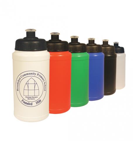These prices are only a guide and can vary based on your qty and branding needs.Manufactured in the UK, the 500 ml Baseline bottles are available in a wide range of colours and both have a generous print area. It has a screw on cap with push pull or valve style opening, with a range of colourful caps to choose from that can be mixed and matched with the bottles. These bottles are BPA free.
