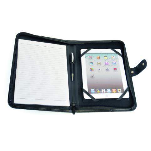 These prices are only a guide and can vary based on your qty and branding needs.A4 adjustable zipped tablet holder with edge trim and popper tab close. Includes pen loop, and 25 sheet lined note pad. Opposite side is padded to hold tablet, with four corner elasticated and repositionable Velcro pads for different tablet sizes.