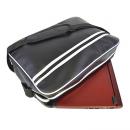 These prices are only a guide and can vary based on your qty and branding needs.PU retro style zipped laptop bag with with padded laptop compartment and velcro tab close. Front and back white trim and two white horizontal stripes across the front pocket. Includes zipped front pocket and adjustable padded shoulder strap.