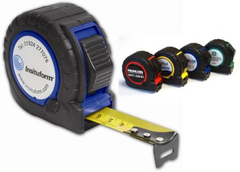 These prices are only a guide and can vary based on your qty and branding needs.TT5 Trade Tape Measure. 5m/16ft professional quality promotional tape measure with an ergonomic rubber grip and shock proof case. Features both metric and imperial measurements on a wide 25mm metal blade. Printed full colour process on a deluxe dome label. Available with blue, green, red and yellow surround.